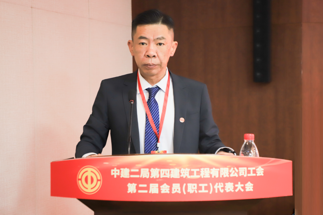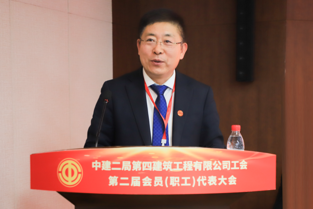 杜建波代表中建二局工會向大會的召開予以祝賀。他表示,四公司工會堅持以習近平新時代中國特色社會主義思想為指導,深入學習貫徹習近平總書記重要講話和指示批示精神,始終堅持融入中心、服務大局,在工會系統多個領域起到示范帶頭作用。四公司工會和廣大工會干部要不忘初心、牢記使命,強化思想政治引領,持續深化中國工會十八大精神的實踐運用,把牢工會工作正確方向。深刻把握工會組織在黨和國家工作大局中的使命任務,緊密圍繞國家重大戰略、重大工程、重大項目、重點產業,聚焦局“高品質履約年”各項目標任務,履行央企社會責任,深化產業工人隊伍建設改革,堅持服務職工為本,滿足職工群眾對美好生活的需要,提升廣大職工幸福指數,提高工會工作能力和水平。